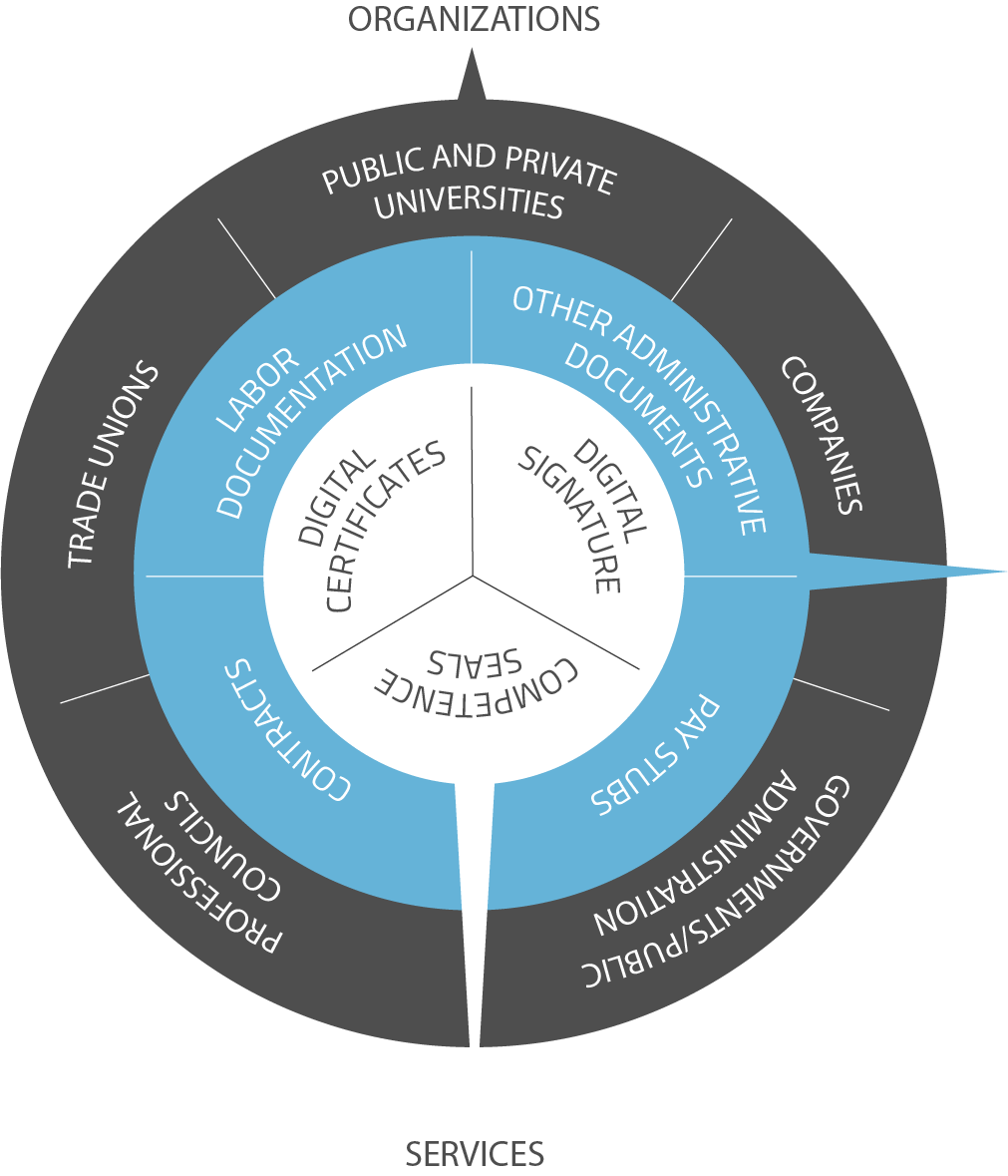 Esto es realizado mediante un conjunto de herramientas tecnológicas que permiten, generar, gestionar y firmar digitalmente los documentos que se intercambian entre la Administración Pública y las Personas Físicas o Jurídicas, detallados en forma enunciativa a continuación: